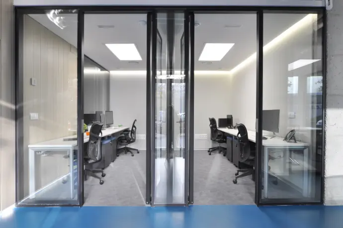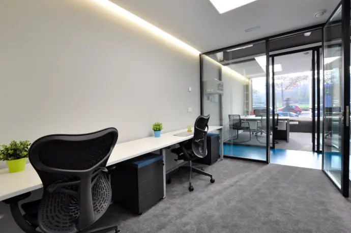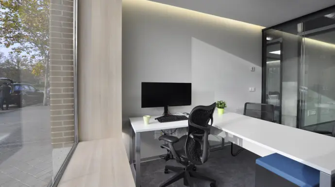 Oficina privada con ventanal exterior para uno o dos puestos de trabajo.